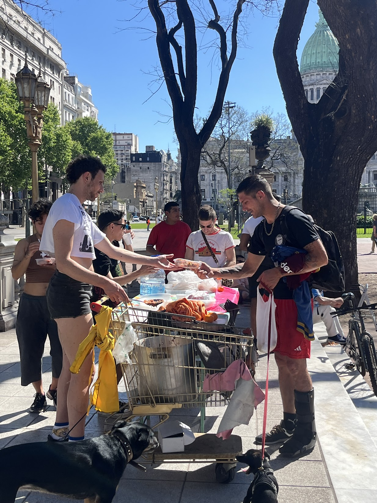 Nacida de la necesidad de alimentar a quienes asisten a nuestras capacitaciones, la Olla Trava se expandió en marzo de 2025 a la Plaza del Congreso ante la intensificación de la hambruna. Extendemos nuestra capacidad de alimentarnos hacia un territorio más amplio, uniendo a la comunidad queer con personas en situación de calle.